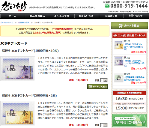 そうしたら、ネット通販のみの販売ですが、クレジットで商品券を買えるギフトショップの「だいちけ」を見つけた時は驚きました。